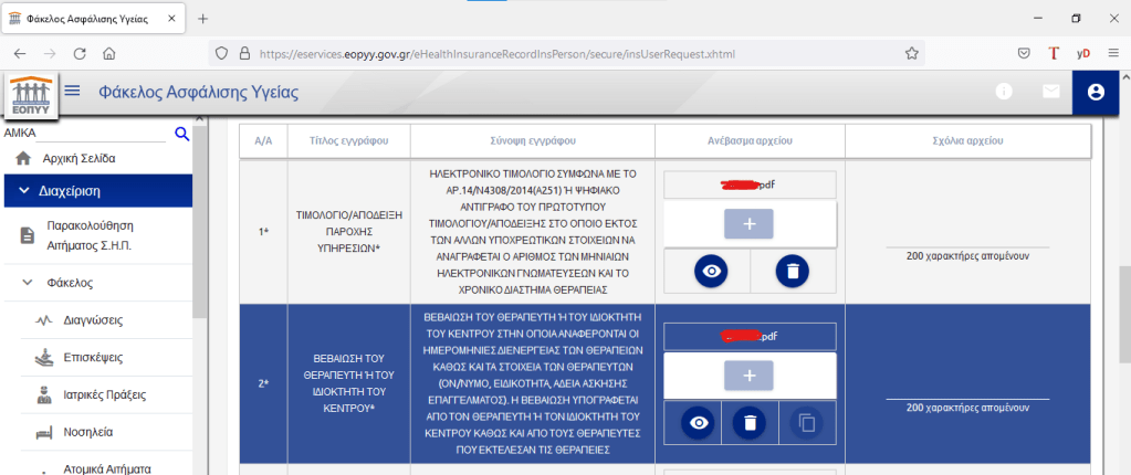 -στο 2: Βεβαιώσεις κέντρου (πάλι σε ένα pdf, είναι ένα χαρτί με στοιχεία του θεραπευτή καθώς και με τις ημερομηνίες των συνεδριών)