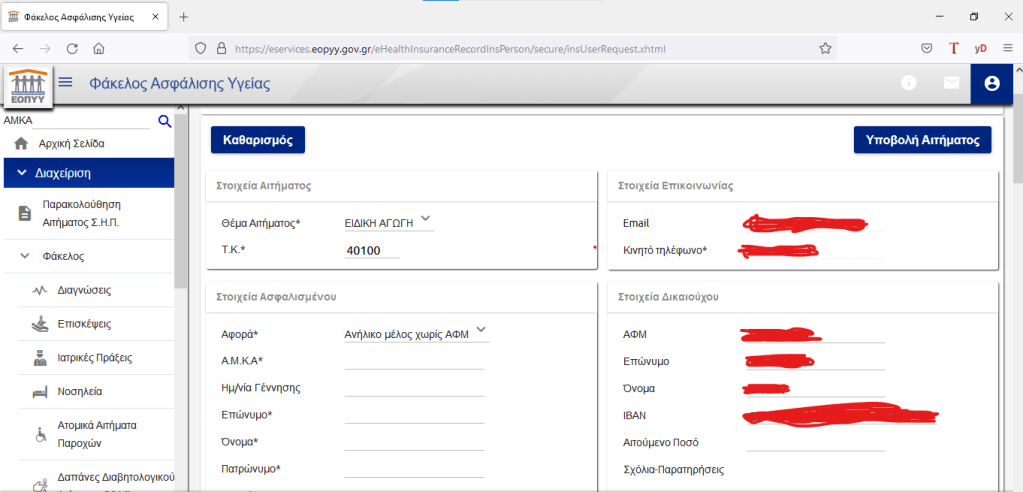 – το μόνο που θα χρειαστεί την πρώτη φορά είναι να βάλετε τον αριθμό λογαριασμού της τράπεζας στα στοιχεία δικαιούχου (με πρώτο όνομα το ασφαλιζόμενο άτομο)