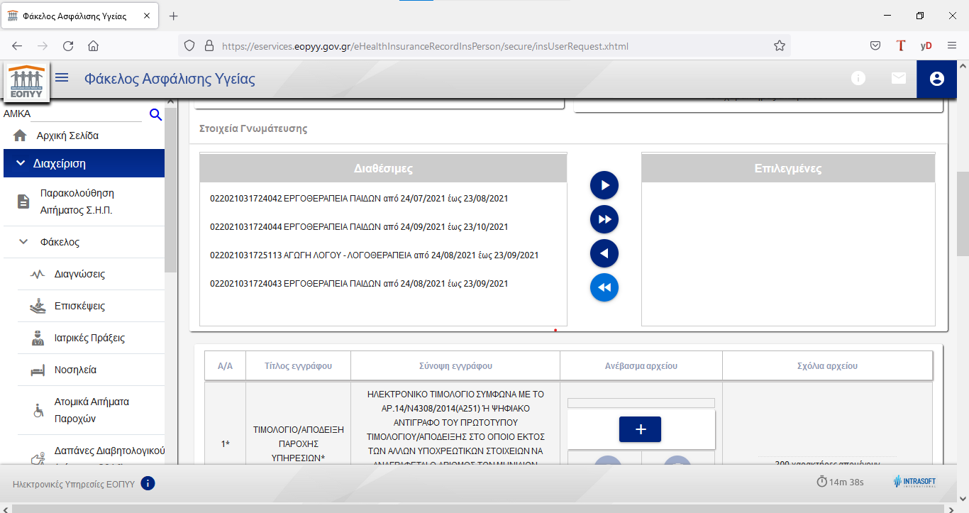 8. Επιλέγουμε τις θεραπείες που έχουμε απόδειξη πατώντας στη συνέχεια το play (να περάσουν δίπλα)