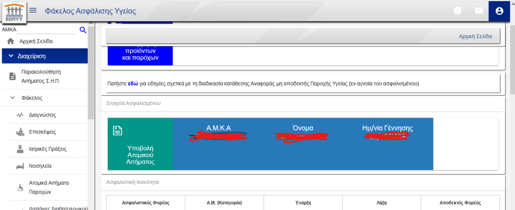 6. Ήρθε η ώρα να πατήσουμε Υποβολή Ατομικού Αιτήματος, με το που γίνουν οι ταυτοποιήσεις μας εμφανίζεται αμέσως στην οθόνη, μαζί με τα στοιχεία του ασφαλιζόμενου