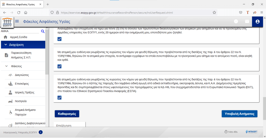 10. Φτάσαμε στο τέλος! Επιλέγουμε και τα 3 κουτάκια και πατάμε υποβολή!